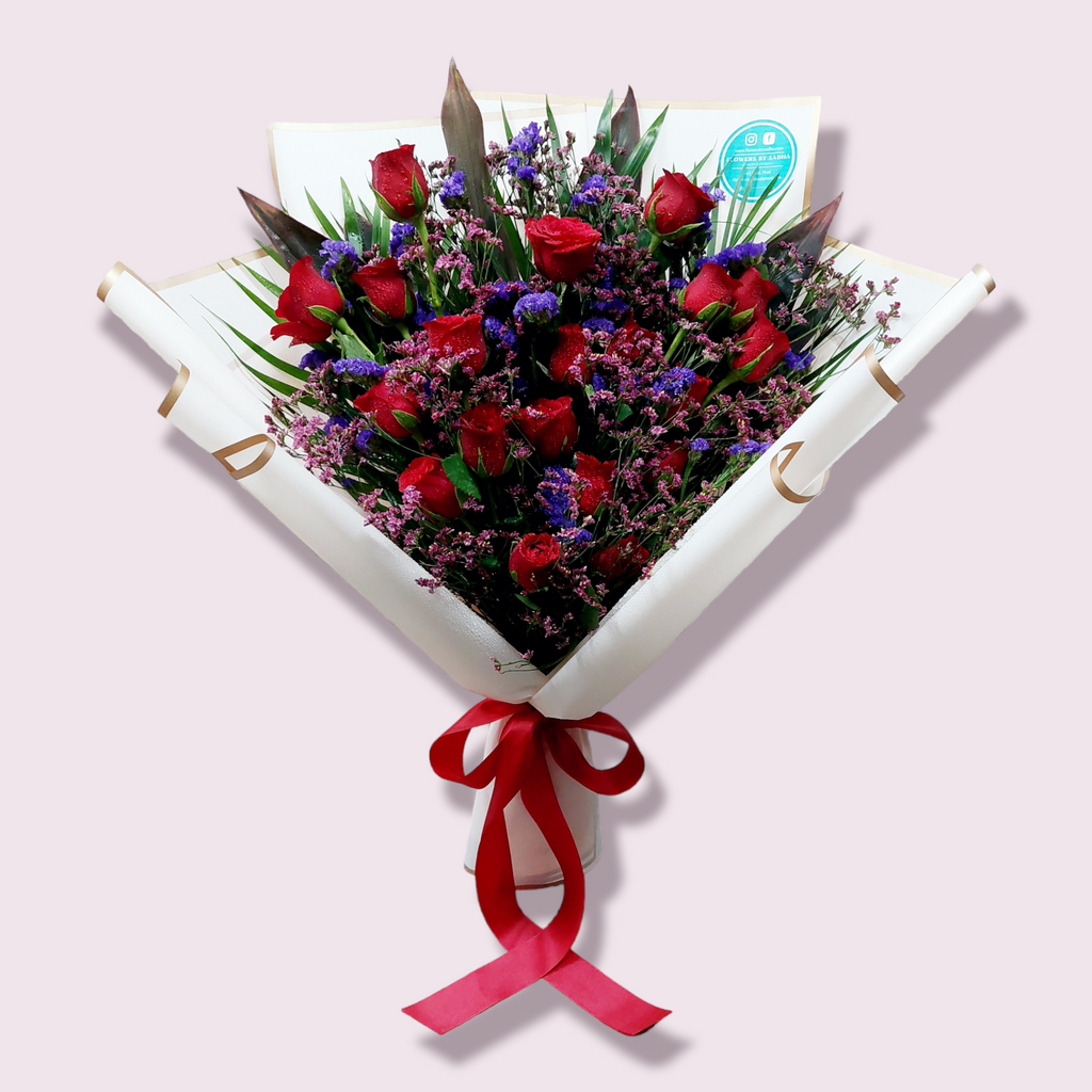 Contains: A choice of 10 or 20 roses with filler flowers, leaves & ferns.